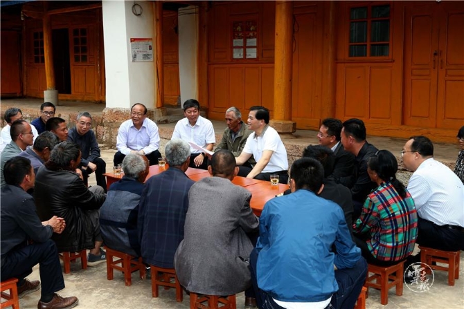 5月26日,调研组一行走村入户,与五福三组的建档立卡贫困户、群众代表、村组干部、基层扶贫干部围坐交谈,实地调研深度贫困地区脱贫攻坚工作。