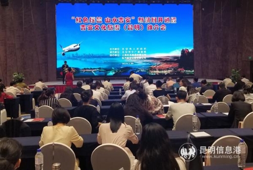 昆明信息港讯 记者上官艳君 5月28日,“昆明-井冈山”新航线开通暨吉安文化旅游昆明推介活动在昆明举行。此次会议由江西省吉安市政府主办,云南机场集团和东航云南有限公司协办。