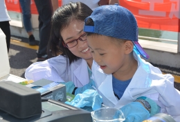 志愿者帮孩子组装玩具 陈昱州/图