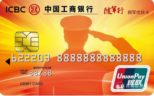 据介绍,军人军属、退役军人和其他优抚对象,可以持证明本人身份的证件(现役军人也可持工行或他行军人保障卡)及身份证到工行网点办理“拥军优抚卡”。