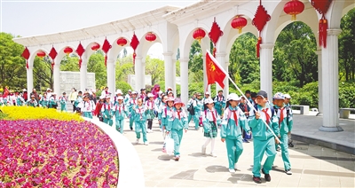 5月28日,西宁市城西区兴海路小学举行庆祝新中国成立70周年暨庆祝六一国际儿童节第十三届“红领巾-绿色小卫士”远足活动。 记者 祁国彪/摄