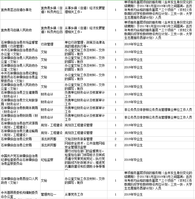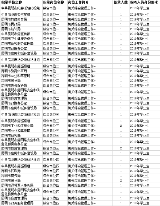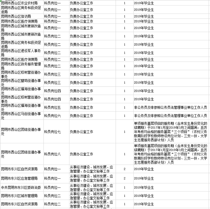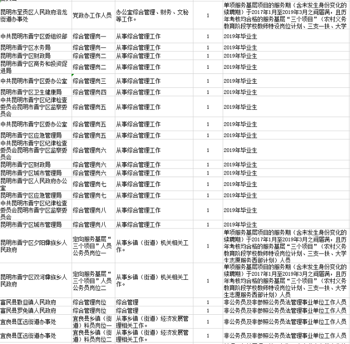 关于公布2019年云南省公务员招录中“大岗位”具体岗位信息的通知