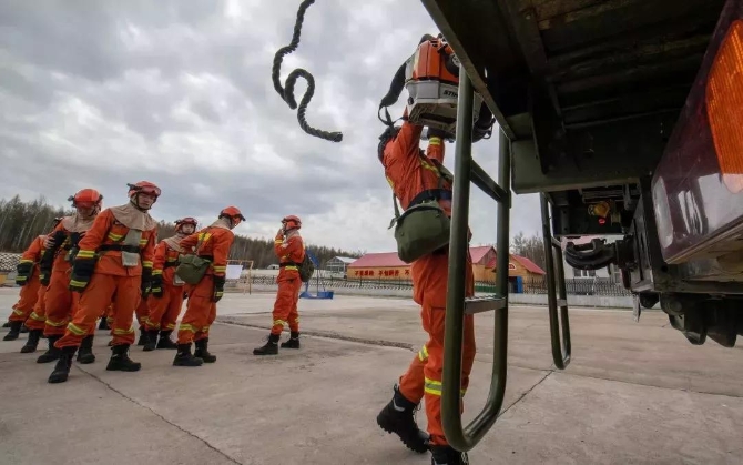 “接到上级指示,管护地区发生森林火灾,紧急集合!”5月8日,奇乾中队举行例行灭火实战演习。随着中队长王德朋一声令下,全体消防员从接到指令到全部人员、设备装载出发,用时不足3分钟。“有火打火,没火训练,这是为了不断提高队员快速反应能力和处置能力,以应对随时可能发生的森林火灾。”王德朋说。