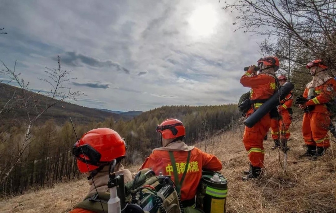 5月10日,奇乾中队消防员到管护区原始森林中进行巡护,查看有无森林火灾安全隐患。奇乾中队现有42名消防员,担负着95万公顷原始森林防火灭火任务,每逢春、夏、秋三季森林防火关键时期,中队的消防员需全天24小时战备。像这样的进山巡护,奇乾中队每周都会进行一次。“这里林间植被茂密,地被物厚达30厘米以上,可燃物蓄载量大,独特的小气候极易导致雷击火,引发森林火灾。而山高林密、灌木丛生的环境又给火灾扑救带来巨大难度。”中队指导员王永刚介绍道。
