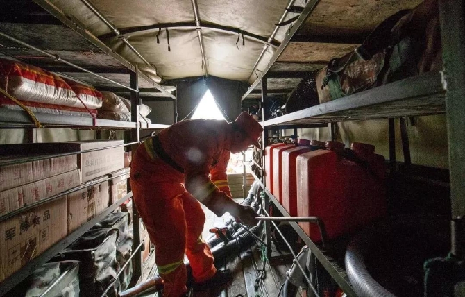 △防火期内,奇乾中队消防员每天都要严格按照规定物品数量、种类和摆放顺序检查车辆。