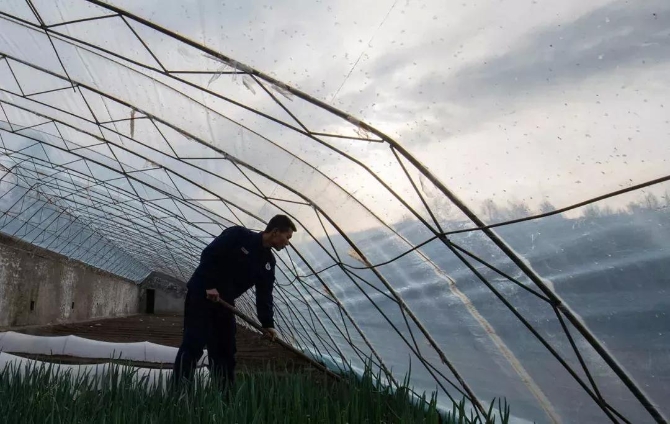 △5月11日,消防员在营房边的蔬菜大棚里种菜。奇乾中队用4年时间在冻土层上开出一小块菜地。