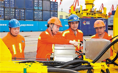 “以前,码头装卸公司发展主要靠流汗,工人挣的是辛苦钱。如今,在物流、商贸流、资金流和信息流深度融合的港口现代物流体系中,我们都是靠‘两个脑子’干活。一个是人脑,把用脑和用力相结合;另一个是电脑。”皮进军是青岛港有名的“点子大王”,他励志要把装卸工从繁重的体力劳动中解放出来,让搬搬抬抬、装装卸卸的力气活变得省时省力高效。
