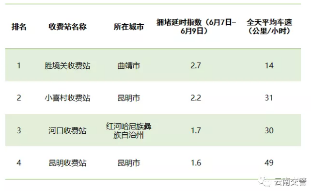 预计节日期间全省较为拥堵的收费站主要是胜境关收费站、小喜村收费站、河口收费站、昆明收费站。如图: