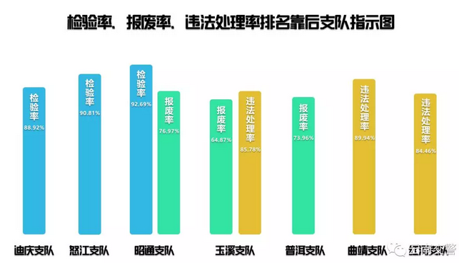 (二)重型货车、挂车、农村面包车三类重点车检验率、报废率、违法处理率排名靠后情况,如下图: