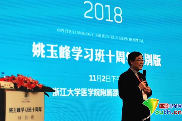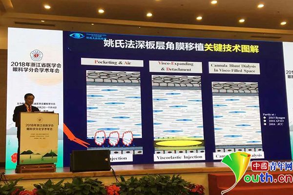 姚玉峰在2018年浙江省医学会眼科学分会学术年会上讲解姚氏法。资料图