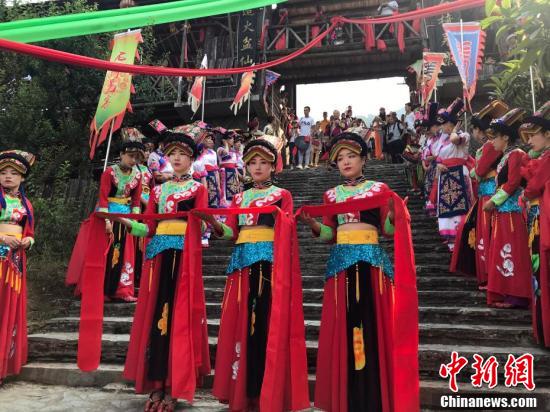 四川北川羌族民众载歌载舞欢庆瓦尔俄足节