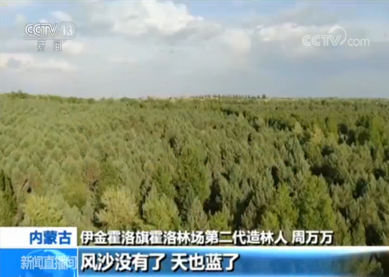 鄂尔多斯市伊金霍洛旗霍洛林场第二代造林人 周万万:当年辛苦,现在享福了。风沙没有了,天也蓝了,山也绿了,水也清了。也感觉到干了40多年没有白干,造林工人就是为了保护环境、建设生态。