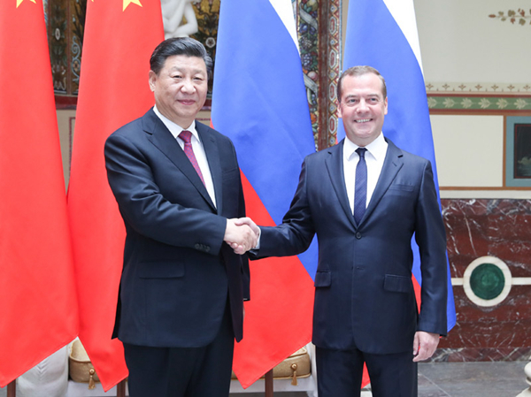 习近平主席同普京总统、梅德韦杰夫总理全面规划中俄务实友好合作,谋划顶层设计,勾勒具体部署,同意本着开拓创新、互利共赢精神,进一步推动两国发展战略紧密对接、发展利益深层融合、民心民意亲密交融。双方将继续开展共建“一带一路”同欧亚经济联盟对接,相互支持共建“一带一路”倡议和“大欧亚伙伴关系”倡议,协同促进地区一体化和区域经济融合发展。双方将持续推进战略性大项目,深挖新兴领域合作潜力,发挥地方经济互补优势,实现经贸合作提质增量,推动双边贸易额向2000亿美元迈进。
