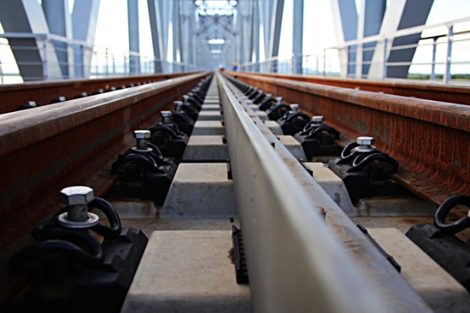 ▲中俄首座跨黑龙江铁路桥同江大桥铁轨。(6月4日摄)本报记者谢锐佳摄