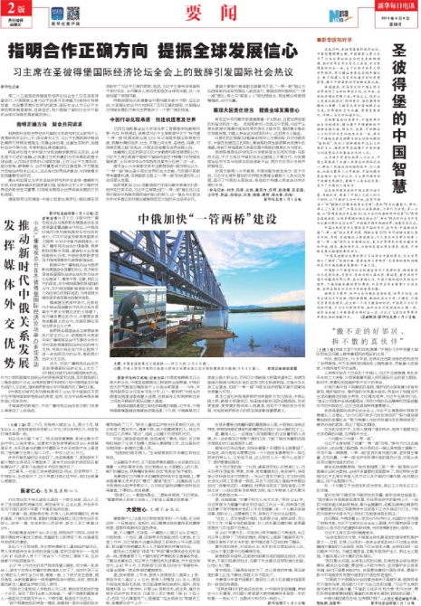 中俄首座跨黑龙江公路大桥合龙、中俄首座跨黑龙江铁路桥全线贯通、中俄东线天然气管道过境段将于6月底全部贯通……今年,中俄两国务实合作迎来丰收之年,以“一管两桥”为标志的跨境设施建设取得重大进展,在我国东北和俄罗斯远东之间将开辟新的国际运输大通道。