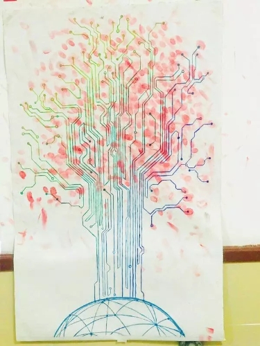 原本红印斑斑的墙壁被粉刷一新后,刘杨用一张大画纸盖在墙壁上。原本打算直接画上树干,可她特别想“整点特别的东西”,联系到如今公安改革正走上“智慧化”道路,看守所也将以此提升管理效能,于是她把这棵“树”的树干设计成一条条电路合成的形状。