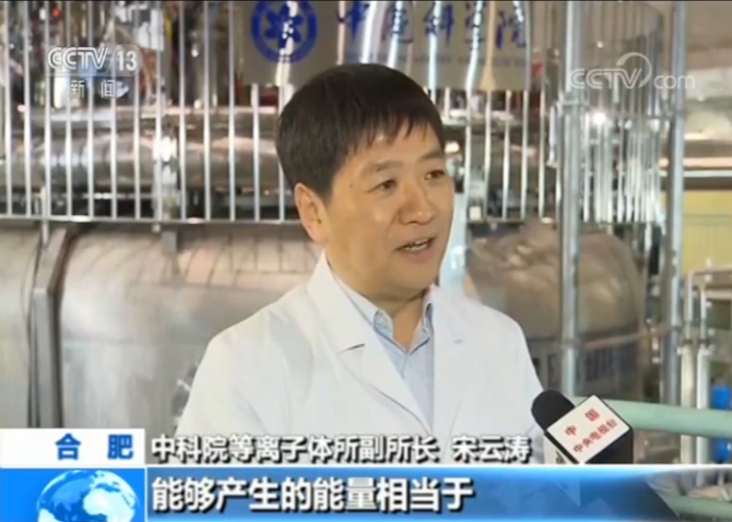 中科院等离子体所副所长 宋云涛:如果我们成功了,一升海水去发生核聚变,能够产生的能量相当于300升汽油的能量,如果这样我们成功了,能够建成未来的聚变电站,那么可以为人类提供取之不尽用之不竭的能源。