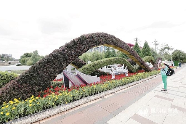 立体花坛寓意“一带一路” 官渡区180万盆鲜花喜迎商洽会