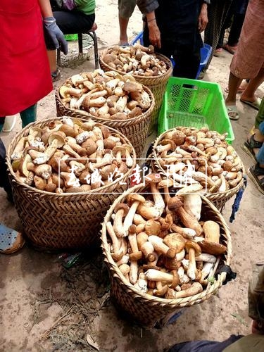 据了解,今早大概有一吨左右的野生菌被送到云南木水花野生菌交易市场,以鸡枞、葱菌、牛肝菌偏多,还有新上市的少量青头菌、铜绿菌。