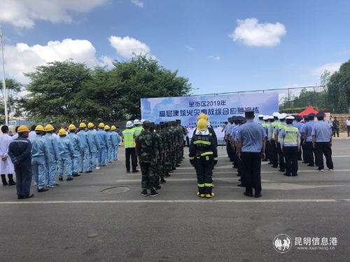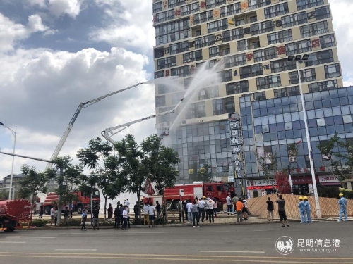 昆明信息港讯 通讯员施杨 黄晓雨 近日,呈贡区在聚贤街与致远路交叉口第七街区商业中心开展“2019年高层建筑火灾事故综合应急演练”。