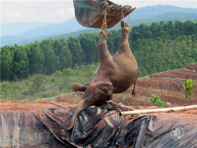 大公象为帮忙脱困用象牙刺死同伴。景洪市林草局供图