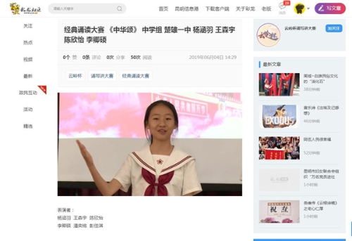 记者在彩龙社区APP上看到,目前各项赛事的报名都已截止,在各个赛事的活动页面,不同组别参赛者已成功报名并提交的作品跃然眼前。在经典诵读大赛的活动页面,《我的祖国》、《满江红》、《木兰辞》等脍炙人口的诗词被参赛者们通过朗诵的形式得以展现;在书写大赛的活动页面,从小学到大学,不同年龄段的参赛者们将对祖国的热爱与对传统经典的理解用工整的硬笔书法一字一句进行了全新的诠释;而在讲解大赛的活动页面,一个个生动有趣、别具一格的课堂通过视频的形式出现在了眼前,镜头里老师们突破时间与空间的界限,将经典课的知识进行传播。