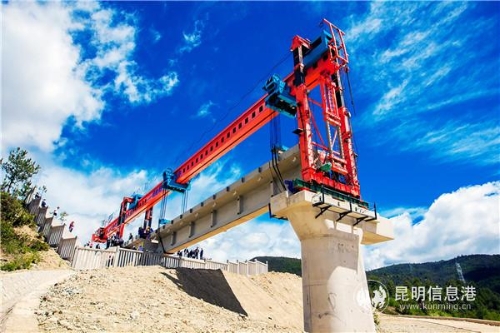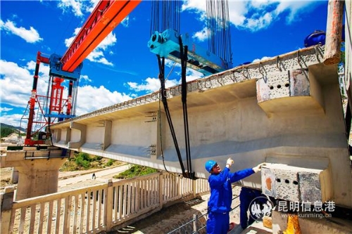 昆明信息港讯 记者上官艳君 6月11日上午,云南丽江至香格里拉铁路小中甸2号大桥开始T梁架设,这也是丽香铁路第一片T梁架设,标志着丽香铁路建设取得重要进展。