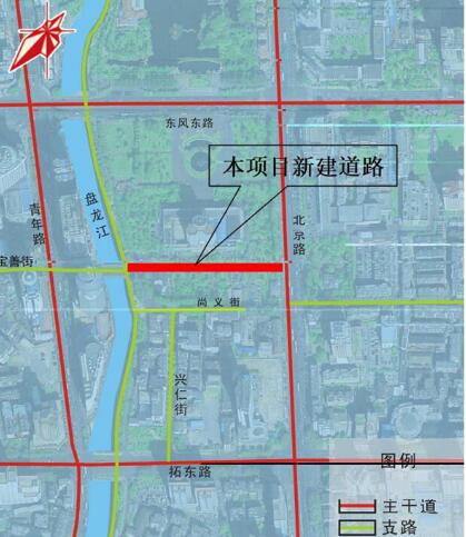 宝善街盘龙段位于东风广场片区,西起盘龙江东岸,东止北京路