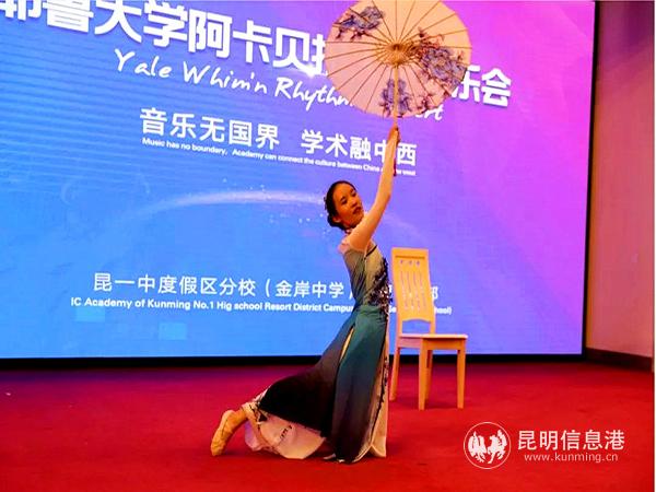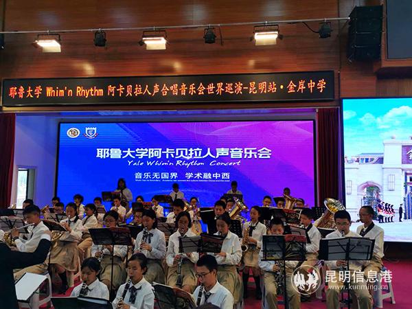 昆明信息港 记者冯冕芸 6月10日晚,耶鲁大学Whim'n Rhythm阿卡贝拉人声合唱音乐会在昆一中度假区分校(金岸中学)(以下简称“金岸中学”)举行。这是该合唱团第二次到访金岸中学。