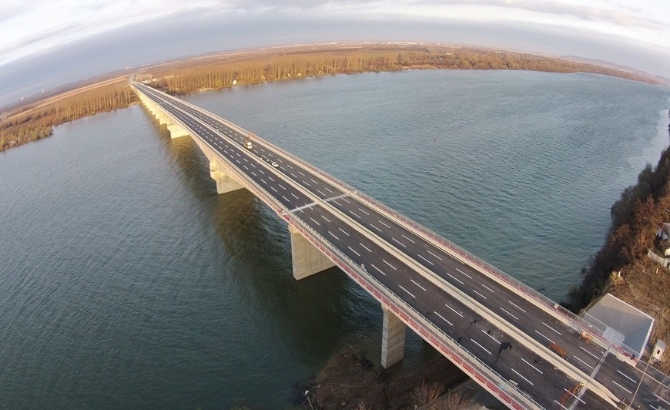 中企在欧洲修建的首座大桥——泽蒙博尔察大桥,被视为中塞两国友谊的象征。图为大桥全景。