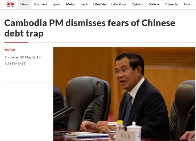 据马来西亚《星报》网5月30日报道,柬埔寨首相洪森在日本举行的亚洲未来会议上表示,柬埔寨陷入中国“债务陷阱”的担忧是多余的。中国贷款利息低,风险低,不会对国家独立构成威胁。而且在使用中国贷款时,中国尊重柬埔寨的主权。