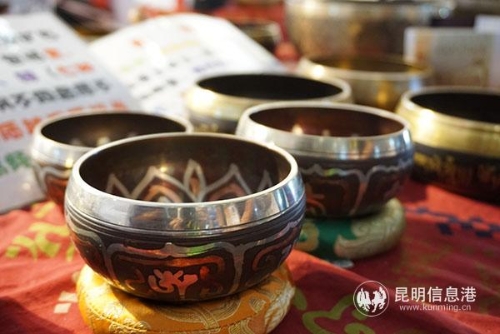 南亚馆里的颂钵对身体理疗有特殊的作用,听声音静心,其共振波能促进血液循环。记者劳学丽 /摄