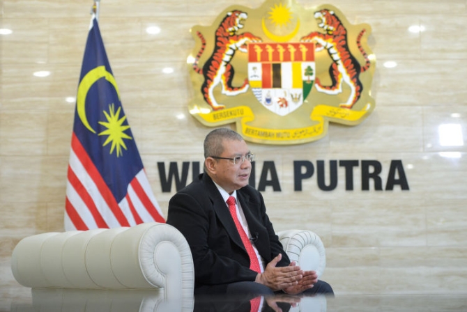 6月13日,马来西亚外交部长赛夫丁在普特拉贾亚接受新华社记者专访。(新华社发)