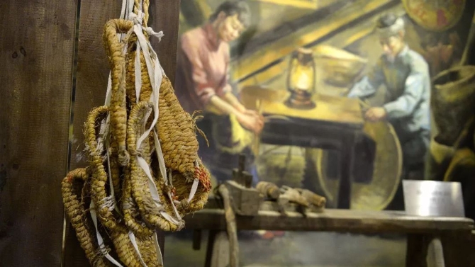 江西省于都县中央红军长征出发纪念馆内展示的草鞋和制作草鞋的工具 新华社记者万象/摄