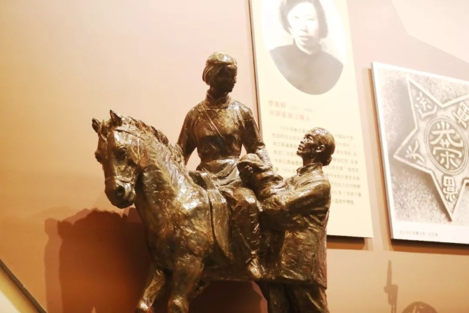 在兴国县革命烈士纪念馆的李美群雕像。