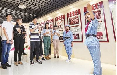 6月15日,“记者再走长征路”主题采访团走进兴国县萧华红军小学红星闪闪德育教育基地,听小讲解员讲述长征故事。孙超 钟庭根摄影报道
