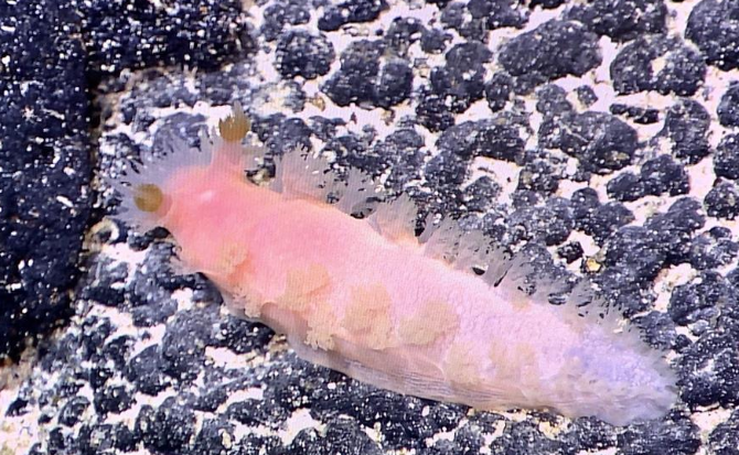 “发现”号遥控无人潜水器在海山拍摄到的海兔(5月27日摄)。新华社发