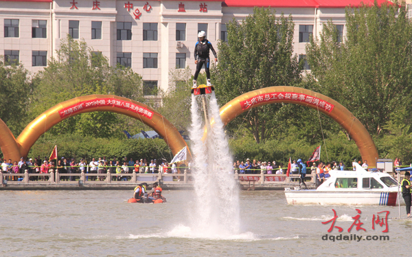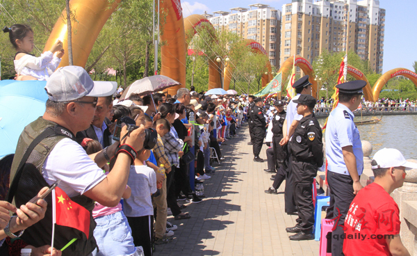 6月16日,黎明湖码头阳光明媚、旌旗飘扬。由大庆市政府主办,市委宣传部、市总工会、市文化广电和旅游局、市体育局承办的“龙腾百湖”2019年中国·大庆第八届龙舟邀请赛在黎明湖上激情开桨。“千帆”竞渡,“百舸”争流,万余市民到场观战。