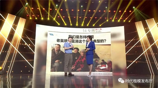 在隆重庆祝中华人民共和国成立70周年之际,中共中央宣传部决定,授予张富清同志“时代楷模”称号。中宣部副部长梁言顺专程从北京赶到来凤,在张富清疗养的医院为老人完成了颁奖。