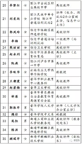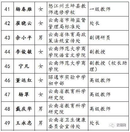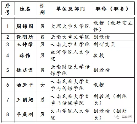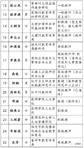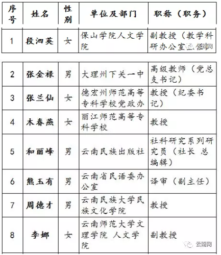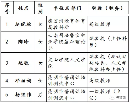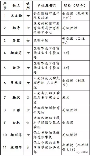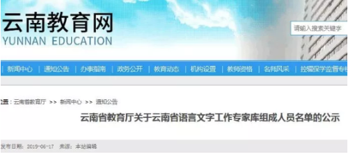 6月17日,云南教育网发布《云南省教育厅关于云南省语言文字工作专家库组成人员名单的公示》称,为进一步发挥专家学者在语言文字科学研究、咨询评估、工作指导等方面的作用,更好推动云南语言文字事业不断提高发展,云南省语言文字工作委员会办公室、教育厅办公室联合下发了《关于遴选组建云南省语言文字工作专家库的通知》,经相关单位推荐和初审,拟将本次及以往遴选推荐国家相关专家,共同组成云南省语言文字工作专家库,现将组成人员名单予以公示。