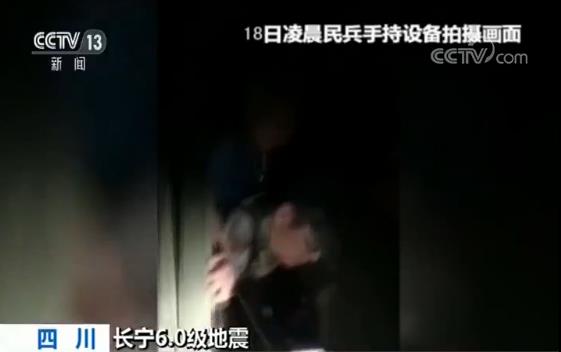 四川省军区也迅速派出先遣组,并组织长宁县民兵应急连和各乡镇民兵应急排、民兵共660人,迅速开展地震排查并投入救援。今天(18日)凌晨,先遣组在震中长宁县双河镇救援时,接到双河社区西街民房坍塌点有人被掩埋亟需救援的消息,立即赶往事发地域,民兵们冒着余震和民房随时倒塌的危险,徒手爬上废墟实施救援。到凌晨1时,民兵成功将85岁老人从废墟中解救出来。目前,老人正在医院救治,无生命危险。