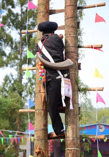 傈僳族刀杆节是居住在怒江傈僳族自治州泸水县境内的傈僳族以及彝族的传统节日,节期是每年正月十五日。“上刀山,下火海”是刀杆节中主要的习俗表演活动,它再现了山地民族翻山越岭的生活经历及攀藤负葛的艰苦卓绝精神。