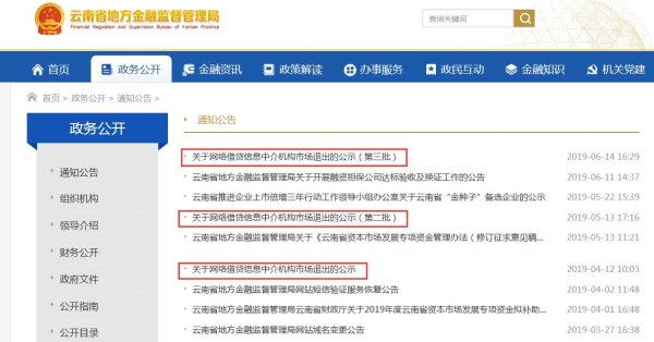 据了解,此前的4月12日、5月13日,云南省地方金融监督管理局分别公布第一批、第二批网络借贷信息中介机构市场退出的公告,分别为27家与25家网贷机构被退出。截至目前,云南省共有60家网贷机构被云南省地方金融监督管理局公示退出。