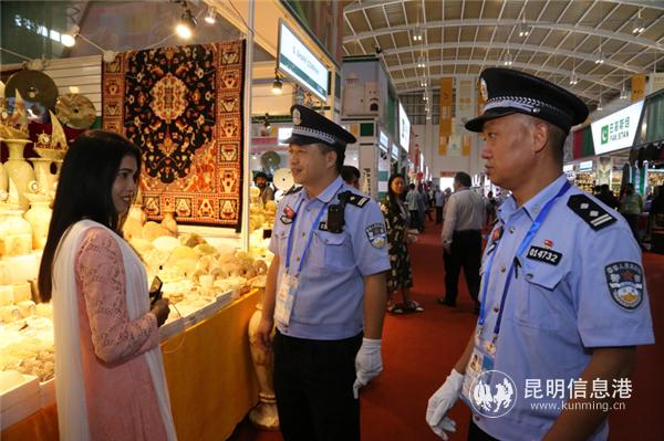商洽会期间,昆明市公安局启动一级防控勤务,以滇池国际会展中心主会场为核心,以系列活动现场为重点,每天投入3万余名安保警力,其中,社会面巡逻防控警力6500余人、滇池国际会展中心核心区安保警力4600余人,完成要人警卫、安检排爆、反恐防恐、交通组织、秩序维护、消防监管等工作。