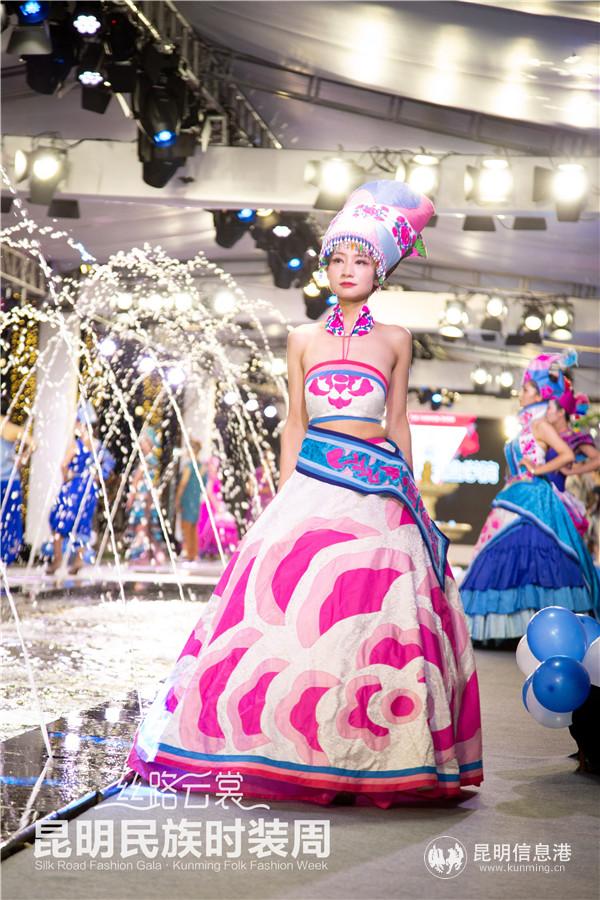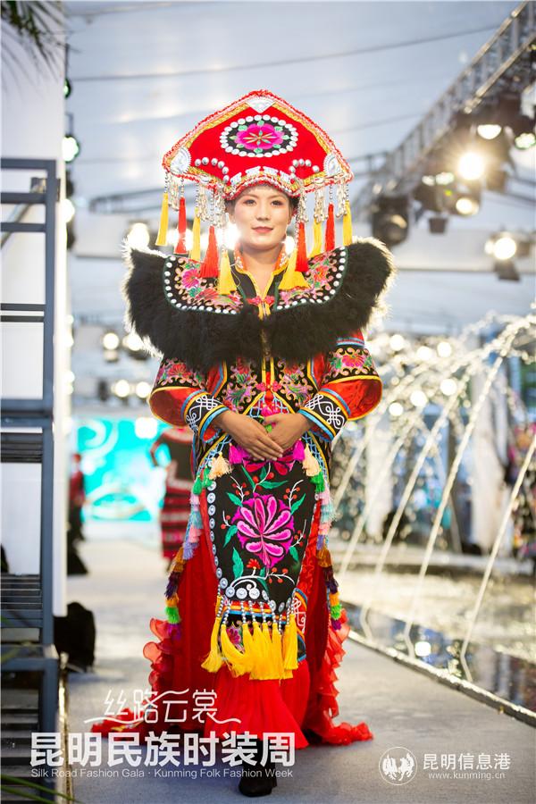 昆明信息港讯 6月18日,“丝路云裳·昆明民族时装周”进行到第6天。当天,现场带来了4场民族服装服饰以及国内外品牌秀活动。楚雄州妇女彝绣协会、大姚县咪依噜民族服饰制品有限公司、威信县锦绣苗艺有限公司、摩梭非遗展馆、南华县七彩彝州工艺品刺绣加工厂、云南布麻凡服饰有限公司、梁河县娥昌民族服饰有限公司、石屏县绣美彝山刺绣专业合作社、云南彝绣天地服饰有限公司、昆明霓裳民族服饰有限公司10家服饰公司将传统与现代相结合的服饰产品搬到秀台上,更有来自云南轻纺职业学院的服装专业师生携数十套服装加入高校服装设计专场,为观众带来了一场精彩的服饰盛宴。