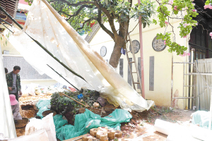 昙华寺公园为400年树龄的优昙古树搭起“手术室”。记者杨艳辉/摄