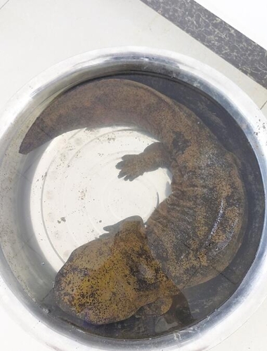 接警后,值班民警迅速赶往现场,在大家的努力下,成功解救了它。经过现场辨认,这是一只国家二级保护野生动物大鲵,俗称娃娃鱼。随后,民警将娃娃鱼带回分局,并认真对其检查是否受伤,确定娃娃鱼没有伤情后,民警将其放归大自然。(记者左学佳 摄影报道)