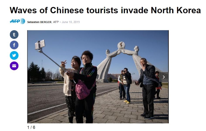中国人赴朝旅游热情高涨。图片来源:法新社报道截图