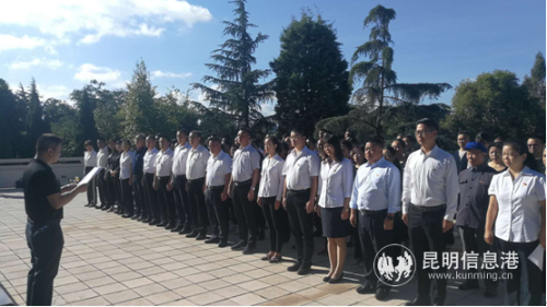 上午9:00,区委政法委书记槐建华带领党员们在呈贡区三台山革命烈士碑前敬献鲜花,重温入党誓词,以铿锵有力的宣誓再一次接受精神的洗礼,坚定对党忠诚的理想信念,时刻保持为人民服务谋幸福,为民族谋复兴的初心。