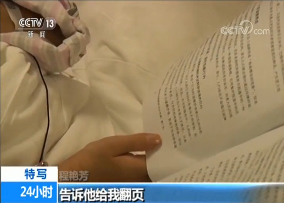 程艳芳:我爸就是坐在这儿,他一只手给我拿着,因为我眼睛可以看,就是坐在这儿看,告诉他给我翻页。
